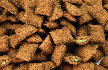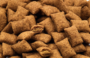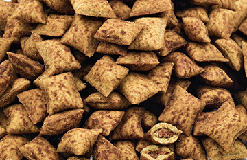 1.生产工艺:原料接收与自动配料系统、粉碎与混合系统、膨化注芯与整形系统、干燥系统、喷涂与冷却系统、筛分与成品包装系统。2.大长径比、高糊化度、芯料在线添加、专用整形设备